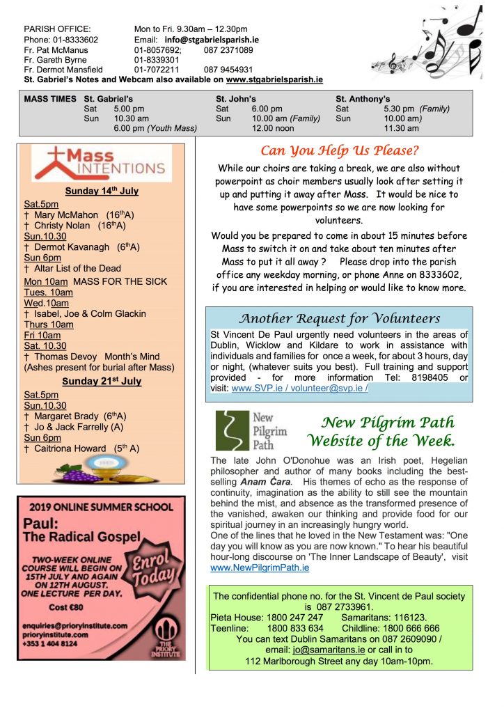 Email: info@stgabrielsparish.ie