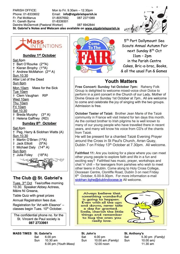 Parish Notes 24th September