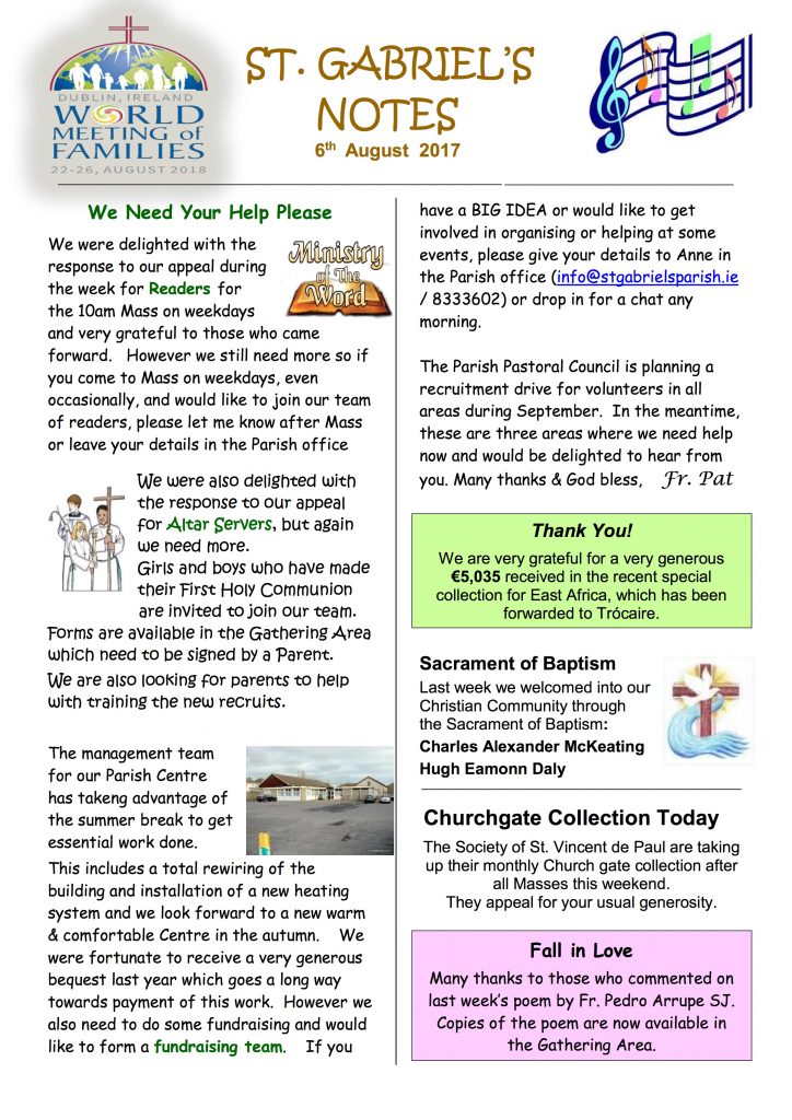 Parish Notes 6th August