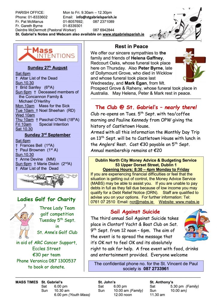 Parish Notes 27th August