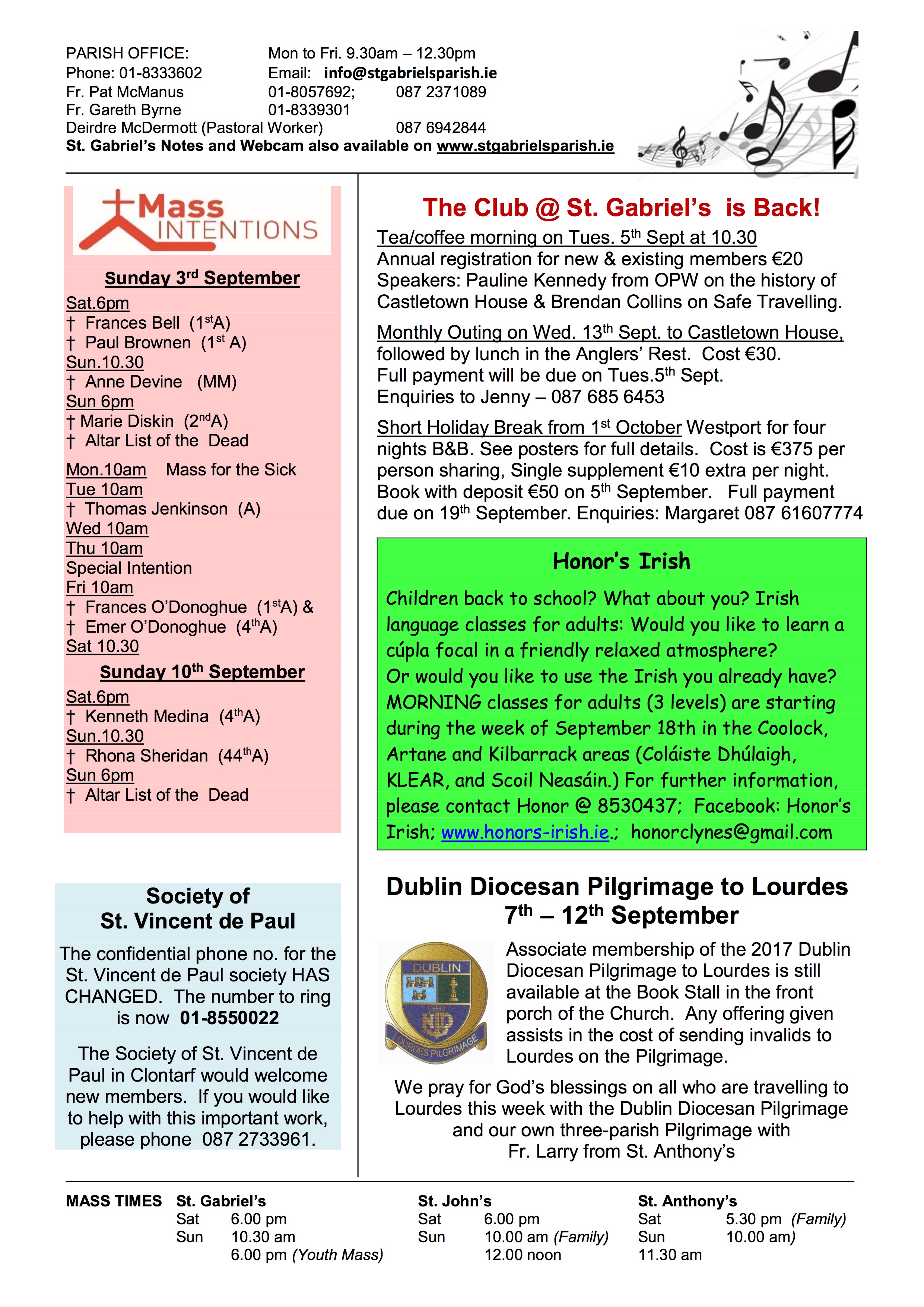 Parish Notes 3rd September
