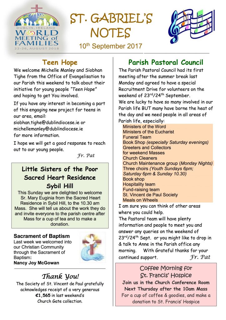 Parish Notes 17th September