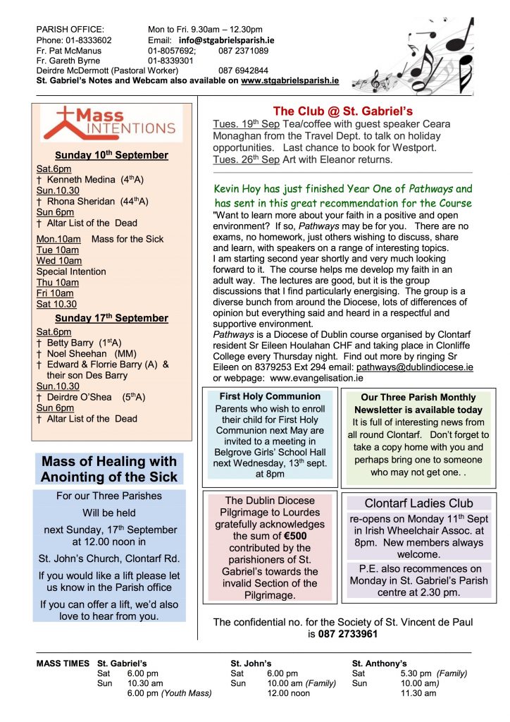 Parish Notes 10th September